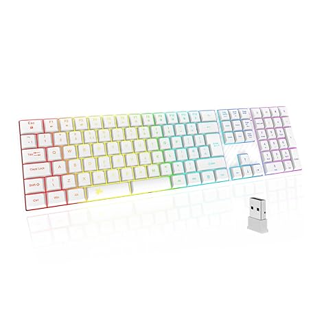 Wireless Backlit Keyboard Quiet - Computer Rechargeable Ergonomic Light UP Keyboard, Silent Keys Full Size Compatible for Windows, Desktop, Laptop, PC, Gaming, PS5 - White