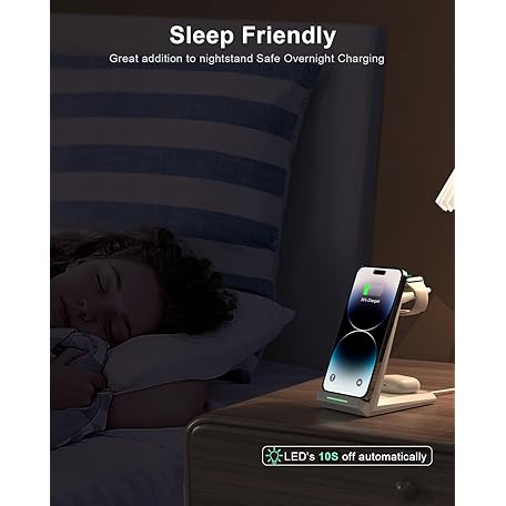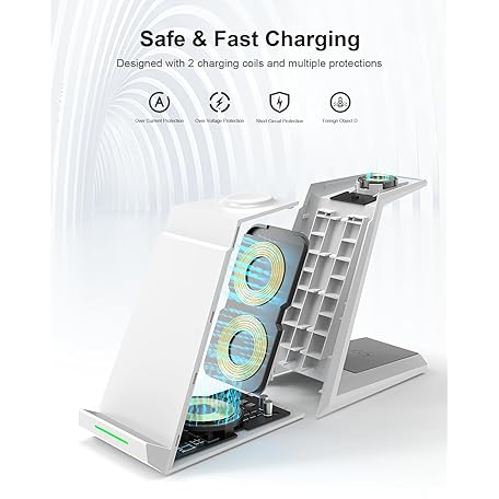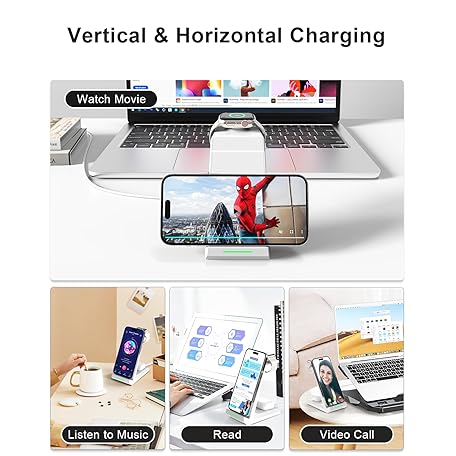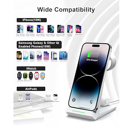 Wireless Charger 3 in 1 - ADADPU 15W Fast Charging Station for Apple iWatch Series 10/9/8/7/6/SE/5/4/3/2 Charger Stand for Multiple Devices iPhone 17/16/15/14/13/12/11 Pro Max/XS/XR/X Airpods-White