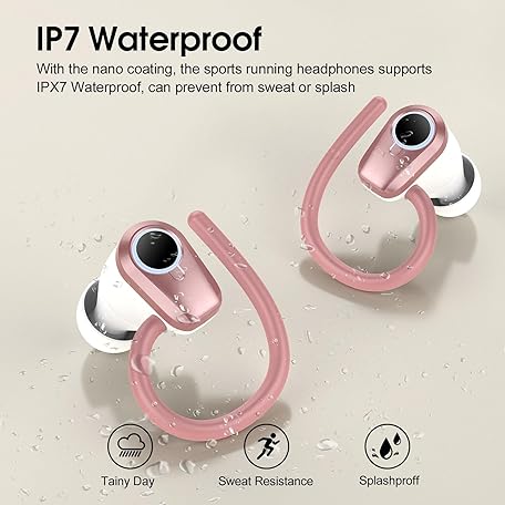 Thông tin sản phẩm Wireless Earbuds, Bluetooth 5.3 Headphones with 4 ENC Noise Canceling Mic, 50H Stereo Dual LED Display Ear Buds, Sport Bluetooth Earphones with Earhooks, IP7 Waterproof Wireless Headphones, Rose Gold
