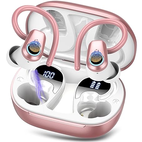 Sản phẩm Wireless Earbuds, Bluetooth 5.3 Headphones with 4 ENC Noise Canceling Mic, 50H Stereo Dual LED Display Ear Buds, Sport Bluetooth Earphones with Earhooks, IP7 Waterproof Wireless Headphones, Rose Gold đang được bán với giá ưu đãi là $27.1301 tại nước Anh.