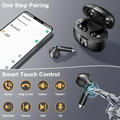 Thông tin sản phẩm Wireless Earbuds, Bluetooth 5.4 Headphones in Ear 2025 Wireless Earphones with 4 ENC Mic, Mini Ear buds with HiFi Stereo Deep Bass, 56H Playtime Dual LED Display, Bluetooth Earbud IP7 Waterproof USB-C