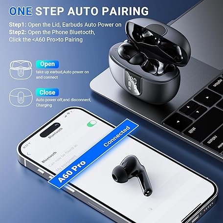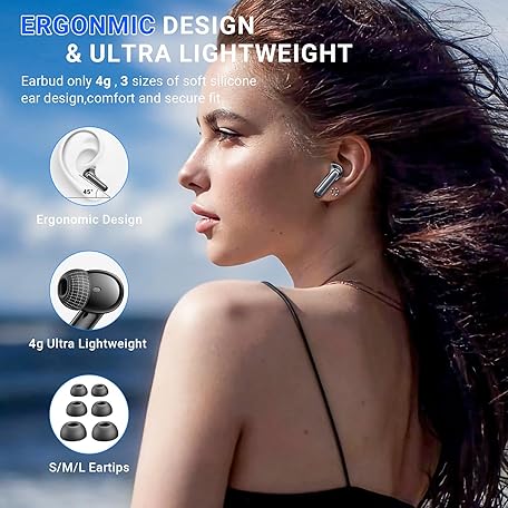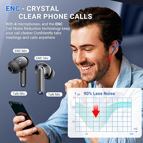 Thông tin sản phẩm Wireless Earbuds,Wireless Headphones Bluetooth 5.3 Headphones in Ear with 4 ENC Call Noise Cancelling Mics HiFi Stereo Mini Ear Buds 42H Playtime LED Display wireless Earphones IP6 Waterproof Black