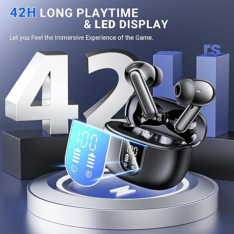Sản phẩm Wireless Earbuds,Wireless Headphones Bluetooth 5.3 Headphones in Ear with 4 ENC Call Noise Cancelling Mics HiFi Stereo Mini Ear Buds 42H Playtime LED Display wireless Earphones IP6 Waterproof Black đang được bán với giá ưu đãi là $23.4459 tại nước Anh.