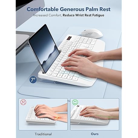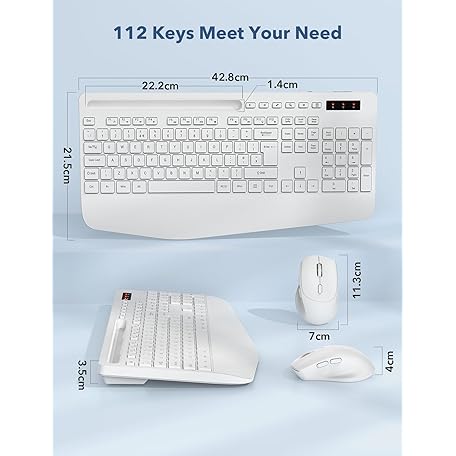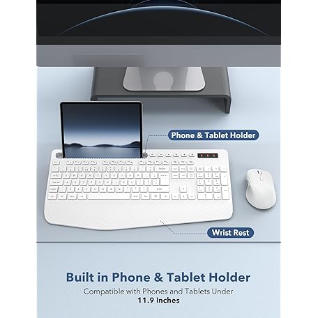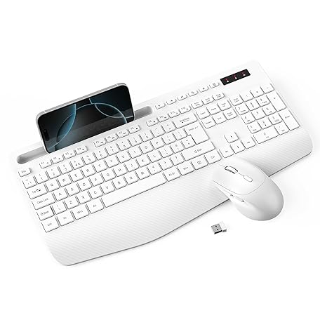 Thông tin sản phẩm Wireless Keyboard and Mouse Combo, Full-Size Ergonomic Keyboard with Wrist Rest, Phone Holder, Sleep Mode, Silent 2.4GHz Cordless Set for Computer, Laptop, PC, Mac, Windows (White)