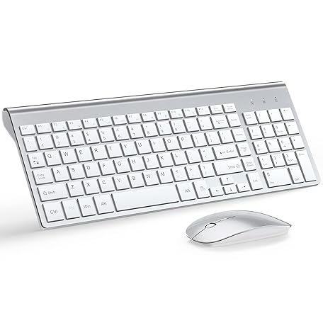 Wireless Keyboard and Mouse Ultra Slim Combo, TopMate 2.4G Silent Compact USB 2400DPI Mouse and Scissor Switch Keyboard Set with Cover, Batteries Included, for PC/Laptop/Windows/Mac - Silver White