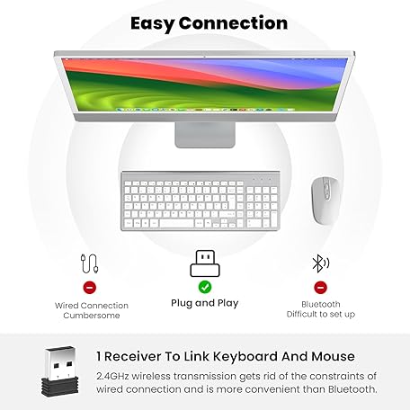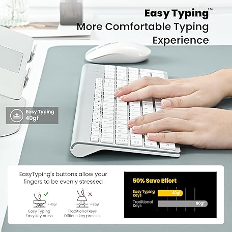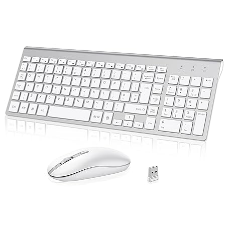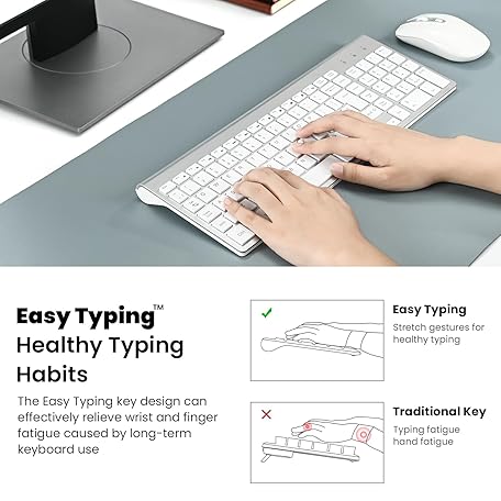 Thông tin sản phẩm Wireless Keyboard Mouse Combo, cimetech 2.4G Ultra-Thin Keyboard and Mouse Set with Sleek Ergonomic Silent Design & Stable Connection for Windows PC Laptop Computer (QWERTY UK Layout, Silver White)