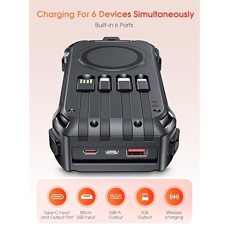 Thông tin sản phẩm Wireless Solar Charger 26800mAh Power Bank 30W PD Fast Charging, 15W Wireless Charger with 4 Built-in Cables, 3 Ports, Flashlights, Portable Battery Pack for Phones, Tablets, Camping (Black)