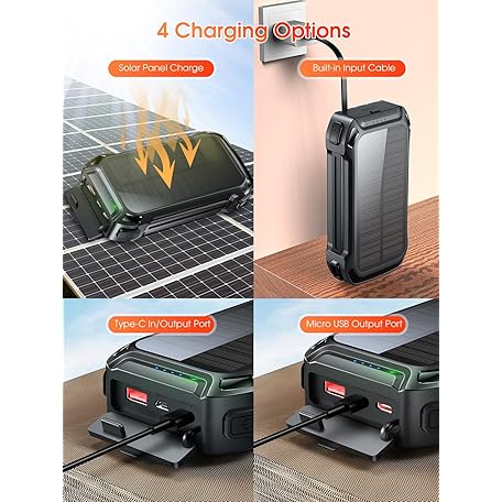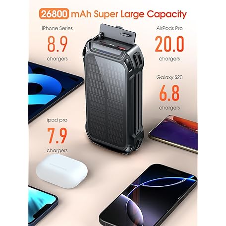 Sản phẩm Wireless Solar Charger 26800mAh Power Bank 30W PD Fast Charging, 15W Wireless Charger with 4 Built-in Cables, 3 Ports, Flashlights, Portable Battery Pack for Phones, Tablets, Camping (Black) đang được bán với giá ưu đãi là $41.4636 tại nước Anh.