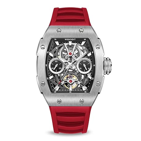 WISHDOIT Watch for Men, Automatic Mechanical Watches, Tonneau Men's Wrist Watches Stainless Steel Sport Style Waterproof Sapphire Crystal Rubber Interchangeable Strap Watches