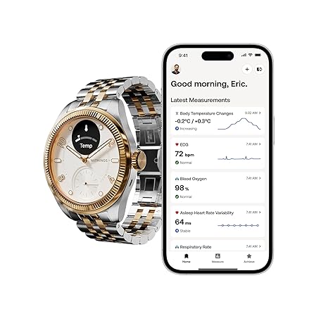 Withings Scanwatch Nova Brilliant - Health Hybrid Smart Watch for Men & Women - SPO2, Temperature Monitoring, Sleep, Respiratory Health, Cycle Monitoring, 30-Day Battery Life, Apple iOS/Android
