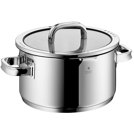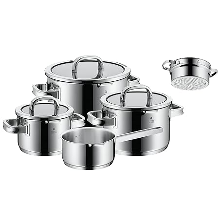 Thông tin sản phẩm WMF 761066380 Function 4 5-Piece Induction Hob Saucepans, Polished Cromargan Stainless Steel with Glass Lids and 4 Pouring Functions, Induction Saucepan, Interior Scale, Black 56 x 30 x 24 cm