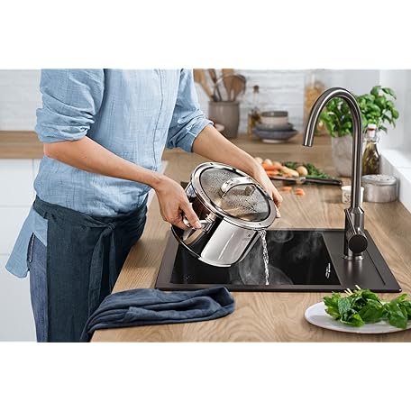 Thương hiệu WMF là cái tên nổi tiếng được rất nhiều khách hàng trên thế giới chọn lựa. Với kiểu dáng đẹp mắt, sang trọng, sản phẩm WMF 761066380 Function 4 5-Piece Induction Hob Saucepans, Polished Cromargan Stainless Steel with Glass Lids and 4 Pouring Functions, Induction Saucepan, Interior Scale, Black 56 x 30 x 24 cm là sự lựa chọn hoàn hảo nếu bạn đang tìm mua một món cho riêng mình.