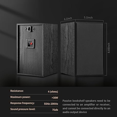 Thông tin sản phẩm WMQ Passive Bookshelf Speakers Pair,30W *2,Stereo Hi-Fi Speakers with 4" Full-Range Driver & Built-in Wall-Mount, MDF Wood Enclosure,Ideal for Turntable, Needs Amplifier/Receiver(Black)