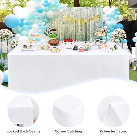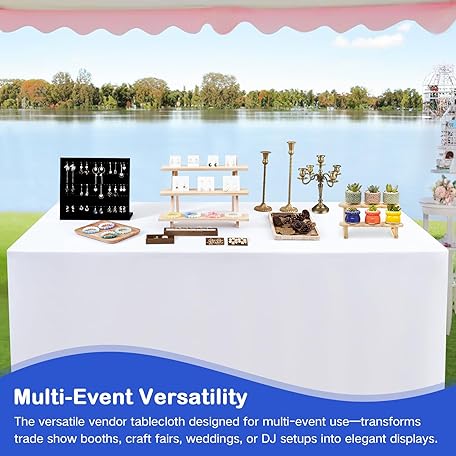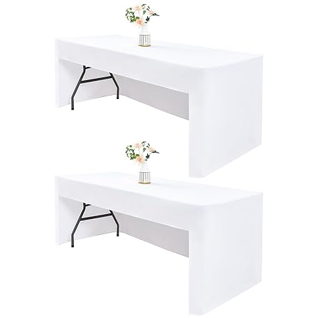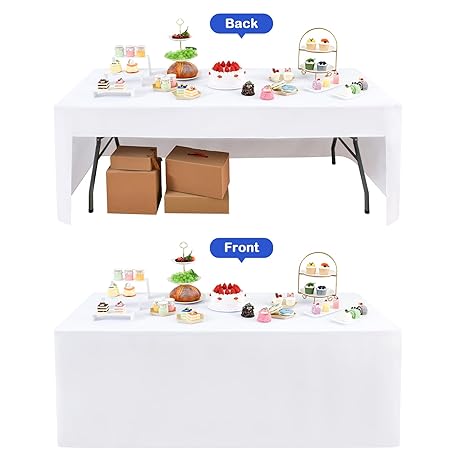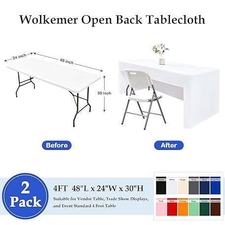 Thông tin sản phẩm Wolkemer 2 Pack Open Back Fitted Tablecloth 4ft Rectangle (48x24 Inch), 3-Sided Vendor Table Cloth Washable White Fabric Event Table Cover for Folding Tables, Craft Shows, Displays, Parties, Weddings