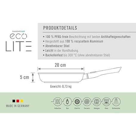 Sản phẩm Woll Eco Lite QXR Flat Pan Inductive Diameter 20 cm Height 5 cm with Removable Handle Suitable for All Hobs PFAS-Free 100% Recycled Aluminium Oven-Safe Black đang được bán với giá ưu đãi là $70.7955 tại nước Anh.
