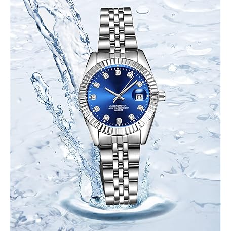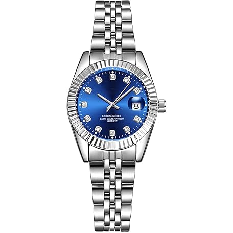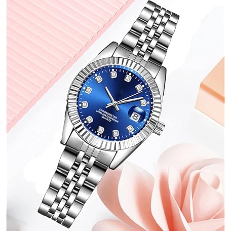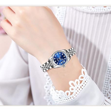 • Women Watch Classic Silver Stainless Steel Waterproof Quartz Analog Watch Fashion Ladies Wrist Watches, Classic Silver blue, Quartz Watch
