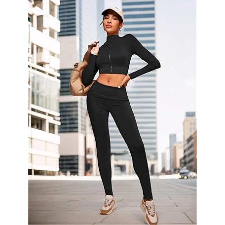 Women Zip-Up Long Sleeve Workout Crop Top with Thumb Holes Slim Fit Athletic Sportswear, Black, Small