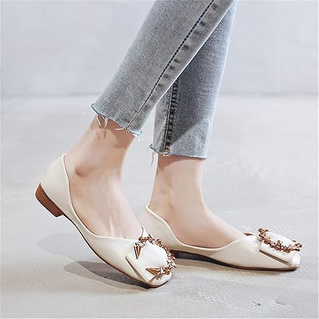 Thông tin sản phẩm Women's Dolly Shoes, Casual Shoes Square Buckle Shoes Fashion Soft Sole Comfortable Maternity Flat Shoes,Flesh,8 UK