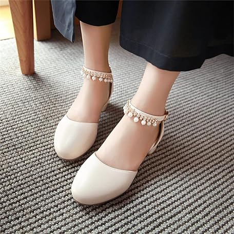 Thông tin sản phẩm Women's Fashion Pearl Strap Round Toe Mid-Heel Dress Sandals, Girls Mary Jane Dress Shoes, Pumps Low Heels Party High School Prom Sandals