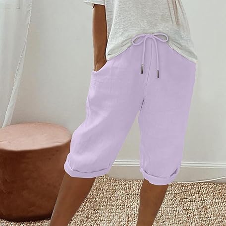 Sản phẩm Womens Shorts Linen Elastic Waist Drawstring 3/4 Trousers for Women UK Summer Knee Length Casual Beach Gym Shorts for Women with Pockets đang được bán với giá ưu đãi là $10.2133 tại nước Anh.
