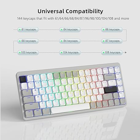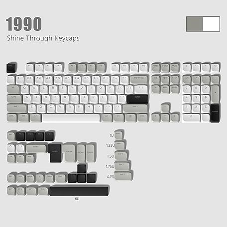 Thông tin sản phẩm Womier Low Profile Keycaps - Shine Through, 75% PBT Keycaps, Full Size for 60% 65% 75% 80% 100% Mechanical Keyboards, Grey/White