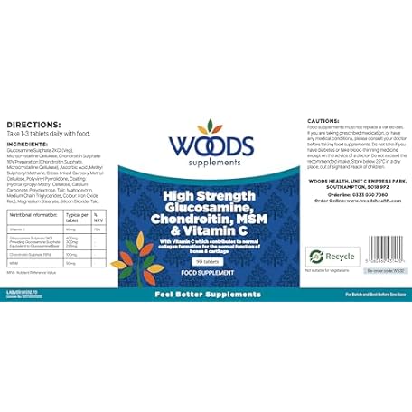 Thông tin sản phẩm Woods Supplements - Glucosamine, Chondroitin, MSM & Vitamin C (360 Tablets) | 400mg Glucosamine, 100mg Chondroitin, 50mg MSM, 60mg Vitamin C | Joint Support & Daily Wellness