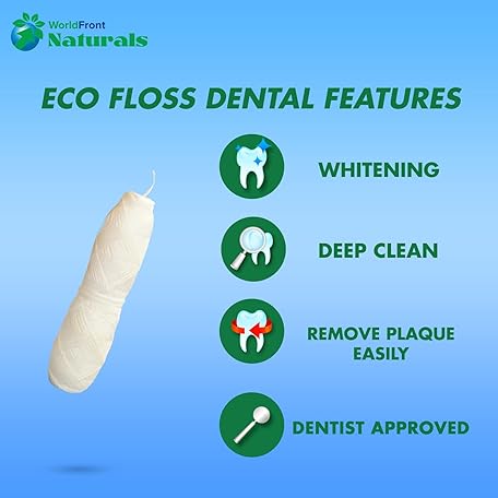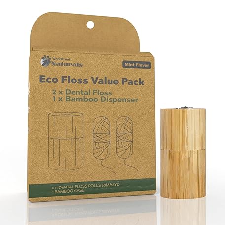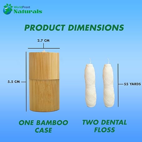 Thông tin sản phẩm WorldFront Naturals Dental Floss (1-Pack) - 2 x 55 Yards of Super Soft, Tooth Floss for a Deep Clean Between Teeth with 1x Refillable Bamboo Dispenser, Mint Flavor