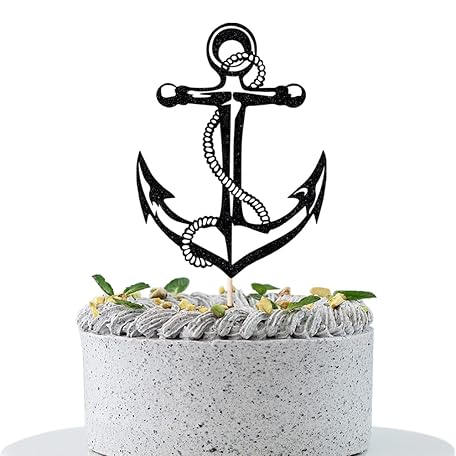 WRACKKIAR Ship Anchor Cake Topper-Nautical Themed Party cake topper-Navy Themed Bon Voyage Decorations Supplies