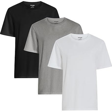 • Wrangler Comfort Stretch Crew Mens Tshirts – Cotton T Shirts for Men, Pack of 3, Black/White/Heathergrey, S