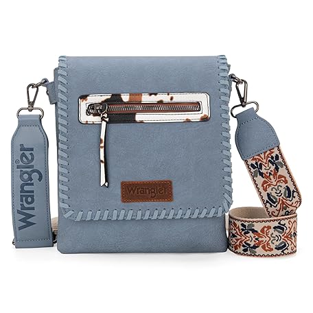 Wrangler Crossbody Bags for Women Vintage Hand Woven Shoulder Purse, Cow-blue
