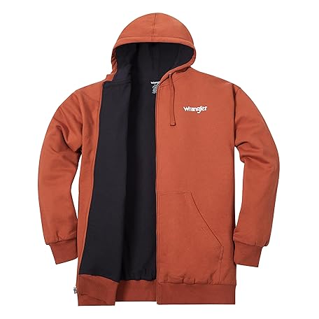 Wrangler Hoodies for Men Big and Tall - Thermal Lined Zip Up Sweatshirt, Walnut/Black, 4XL Plus Tall