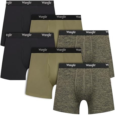Wrangler Men’s Cooling Boxer Briefs, 6” Inseam, Moisture-Wicking, Stretch Fabric, Pack of 6, Quick Dry