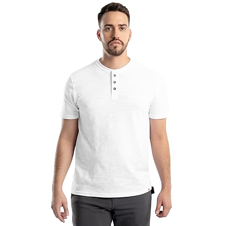 • Wrangler Men's Short Sleeve Recycled Slub Jersey Workwear Henley T-Shirt, White, Large