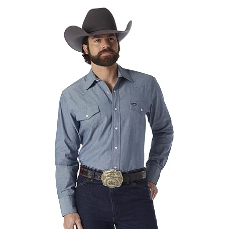 Wrangler Men's Western Long Sleeve Snap Work Shirt Washed Finish