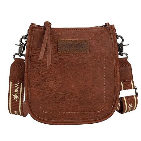 Wrangler Small Crossbody Bag for Women Western Shoulder Purse with Adjustable Strap, Brown