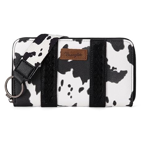 Wrangler Wallet Purse for Women Western Aztec Clutch Wristlet Wallet with Credit Card Holder, X-Cow Print Black, One Size, Trendy