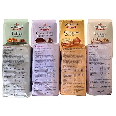 Thông tin sản phẩm Wright's Baking Cake Mix Selection Pack - Toffee, Chocolate Fudge, Orange & Carrot (One of Each 500g Pack)