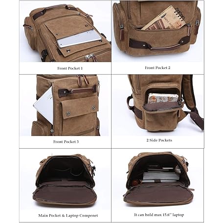 Thông tin sản phẩm WTiger Canvas Backpack with 15.6" Laptop Compartment - Ideal for Men & Women Multiple Pockets for Travel, Outdoor Activities, and School Use Black