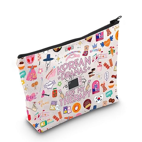 WZMPA Korean Drama Cosmetic Makeup Bag k-Drama Lover Gift Korean Dramas Are My Therapy k-Drama Zipper Pouch Bag For Women Girls, Korean Dramas F, Fit