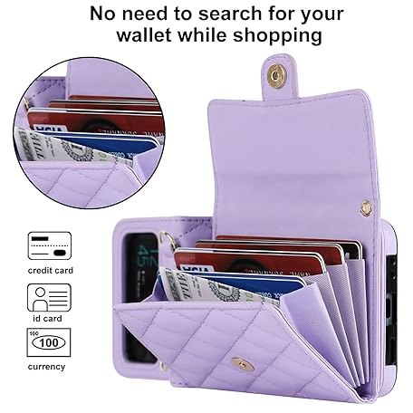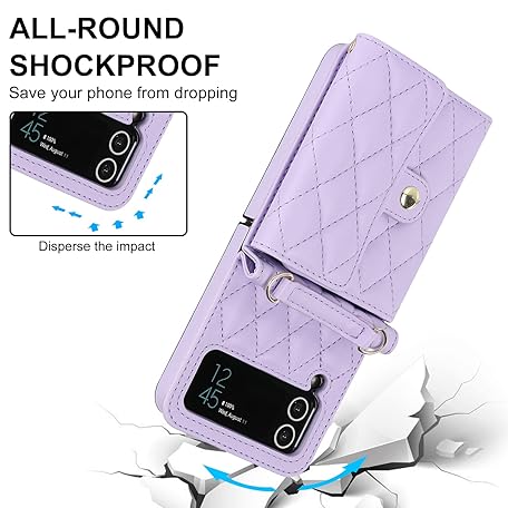 XIZYO for Samsung Galaxy Z Flip 3 Leather Crossbody Wallet Phone Case with Adjustable Removable Lanyard Strap, for Women Girls Cute Luxury Protective Cover with Card Slots, Purple