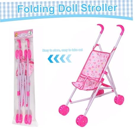 • Xoeryoy Baby Doll Stroller 9.84x19.29x20.87 Inch Doll Stroller Foldable Baby for Dolls with Sturdy Frame Toy for Toddlers Boys, Girls, Little Kids