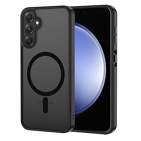 XTCASE Magnetic Mobile Phone Cover Case for Samsung Galaxy S23 FE Compatible with Magsafe, Matt Translucent Mobile Phone Case for Samsung Galaxy S23 FE, Scratch-Resistant PC Back + TPU Bumper - Black