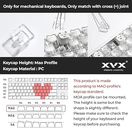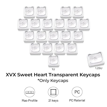 XVX Blank Transparent Keycaps, Sweet Heart PC Custom Keycap Set, Backlit Clear Candy Keyboard Keycaps Mao Profile for MX Switches Mechanical Keyboard (21pcs)