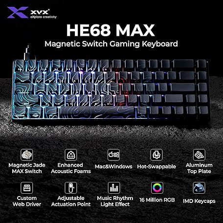 Thông tin sản phẩm XVX HE68 Max Rapid Trigger Keyboard 60% Percent,Hall Effect Keyboard with Gateron Magnetic Jade Max Switch,CNC Aluminum Frame Custom Mechanical Key Board for PC/Laptop/Xbox/PS4/PS5, Black Phantom