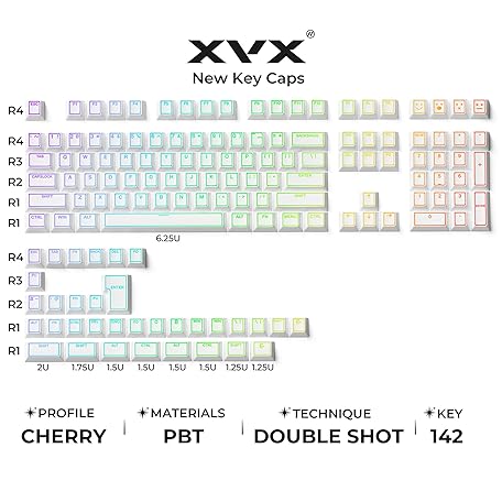 XVX White Shine Through Keycaps, Doubleshot PBT Keycap Set Cherry Profile, 142 Keys Keyboard Keycaps, Universal Compatiability with 60% 65% 75% 80% 100% Mechanical Keyboard with MX Switches