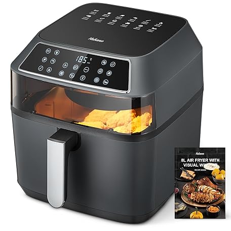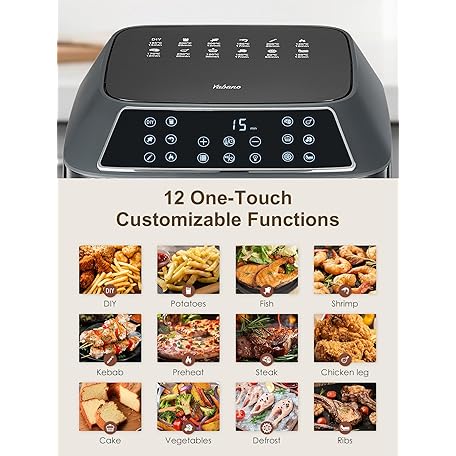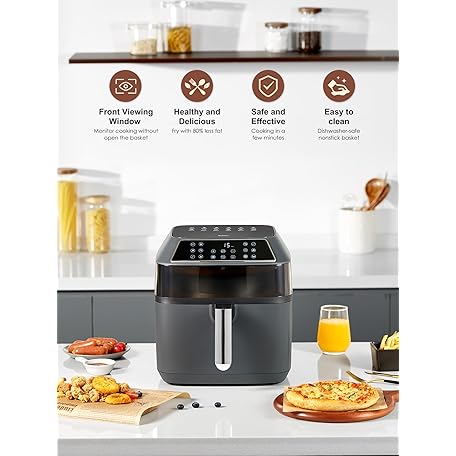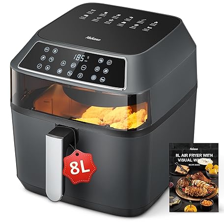Thông tin sản phẩm Yabano Multifunctional Digital Air Fryer, 8L Air Fryer with Window, 12 Pre-Set Functions, 360 Degree Cyclonic Air Technology, Digital Touch Panel, 1700W, Auto Shutoff, Recipe Book Included, Black