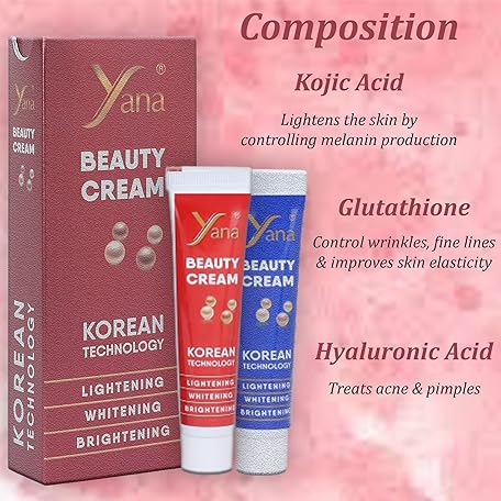 Thông tin sản phẩm Yana Beauty Whitening Cream - Korean Skin Moisturiser for Face & Body with Kojic Acid, Glutathione & SPF - Brightening for Hyperpigmentation, Dark & Oily Skin - Advanced Lightening Formula - 30g