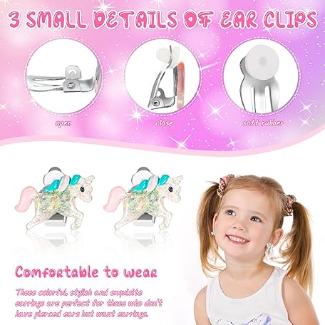Sản phẩm Yaomiao 6 Pairs Kids Clip on Earrings for Girls Gifts Bling Unicorn Flower Heart Earrings No Pierced Princess Play Girls Dress up Jewelry Set for Kids(Lovely Style) đang được bán với giá ưu đãi là $8.6001 tại nước Anh.