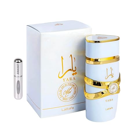 Yara MOI Original White Perfume 100 ml, Long Lasting Arabic Perfume, Eau da Parfum Imported from Dubai, Includes 5ML Refillable Atomizer, Tropical and Vibrant Fragrance, Unisex (Yara MOI)