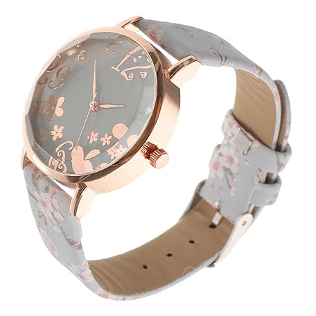 Yardwe Elegant Floral Quartz Watch for Women Lightweight Leisure Style Wristwatch with Light Blue Strap Suitable for Daily Wear and Giving